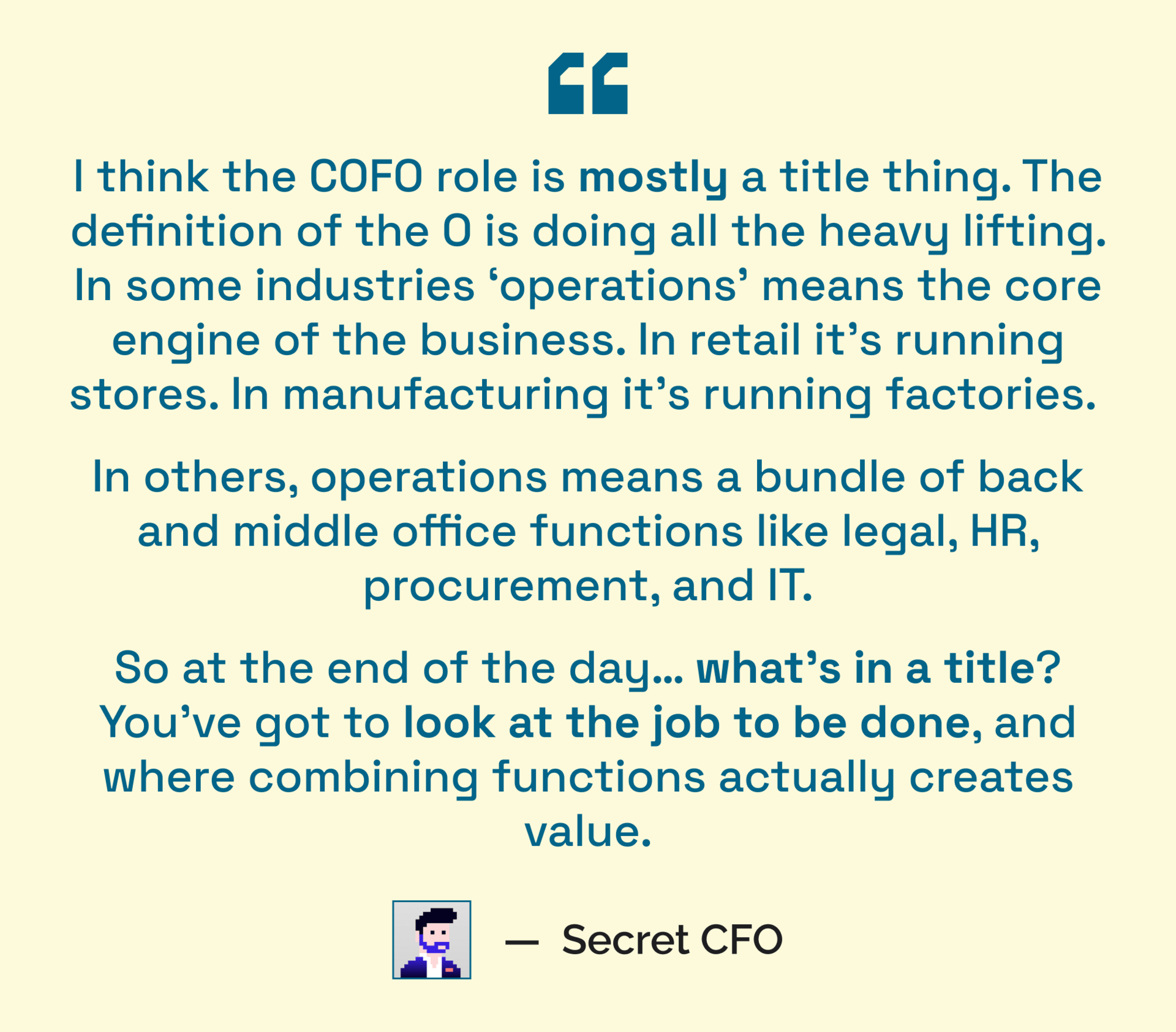 COFO roles are not going away. We will see more of them as emerging tech strips out lower-value work. But you do not need the title to own operations. In some industries operations is the beating heart of the business. In others it is a tidy bundle of back office functions. The broader and closer to the front line it gets, the more it deserves to stay a standalone role.